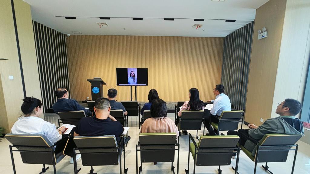魏双飞介绍了2025年国际学生报名情况及生源背景及我校首批国际学生招生计划,招生录取工作组逐一审阅国际学生个人申请资料和自我陈述,申请者们通过视频形式介绍了个人家庭背景、学习经历和对未来来校学习的期待。